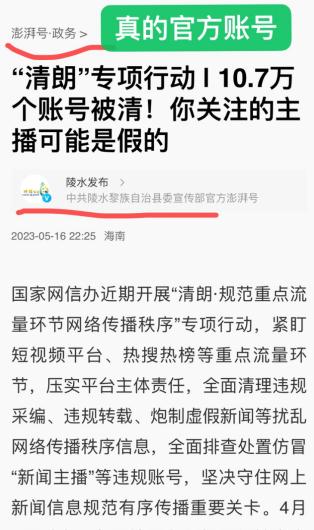 为此,国家网信办开展了“清朗”专项治理行动,至今已集中清理了仿冒新闻单位、新闻主播账号10.7万个,数量触目惊心!
